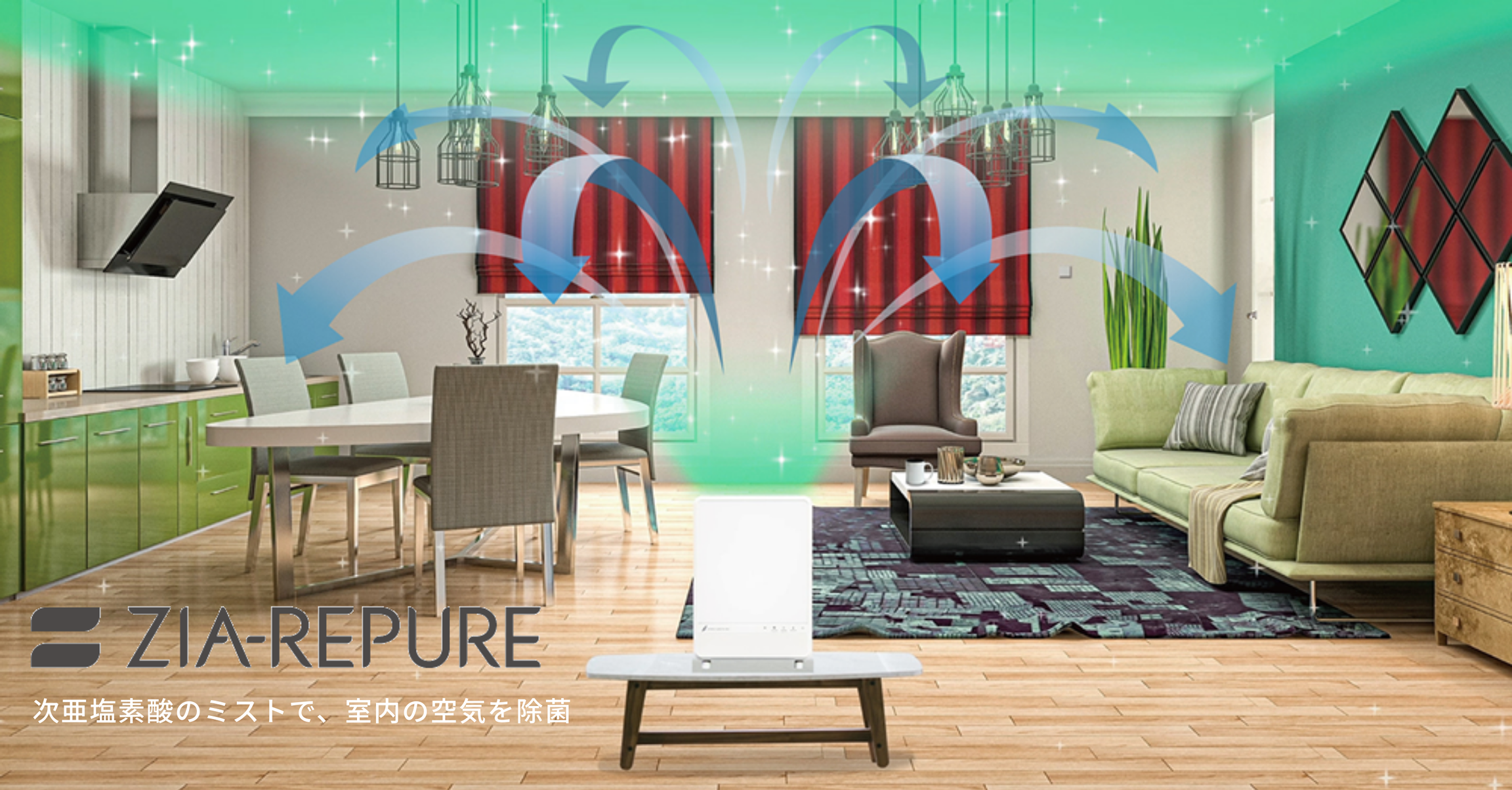 ジアリピュアは、次亜塩素酸の力で空間のウイルスや菌、ニオイを除去する除菌・消臭剤。安全性に配慮した弱酸性タイプで、ペットや小さなお子さまのいるご家庭でも安心してご利用いただけます。